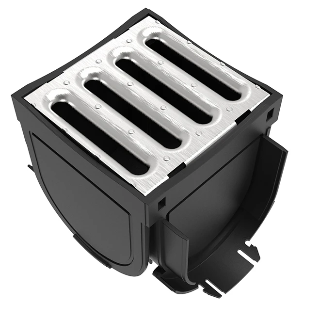 The unique 4-way adapter design of this RELN storm drain allows the user to install the drain by sliding it into the female end of the channels. Alternatively, the stainless steel grate can clip to the male end as well.