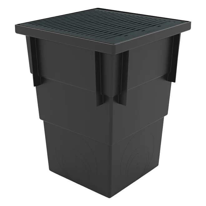 Improve the value of any property with this RELN catch basin. The lightweight polypropylene construction of this basin provides longevity. Secure pipes with ease using this deep catch basin that comes with templates that support various pipe dimensions. This basin also comes with a lightweight plastic grate that prevents blockage. Get this drainage catch basin that measures 13.5 in L x 13.5 in W x 17.75 in H.