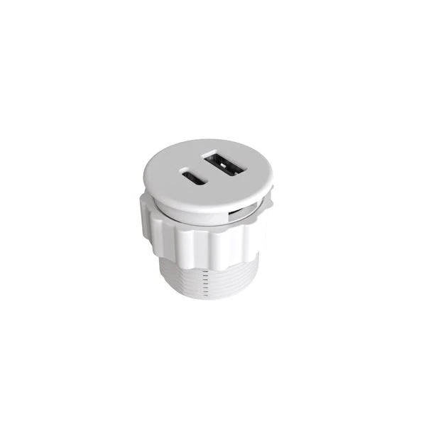 Make your office space ergonomic thanks to this charging solution equipped with USB-A and USB-C connection technology. Ideal to optimize your office space, night tables, coffee tables, or any other furniture where you set down your rechargeable devices. Simply drill a 30 mm hole, insert the charger, and affix using the mounting ring.