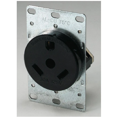 Heavy-duty RV receptacle. 30A x 125V x 2P/3F.