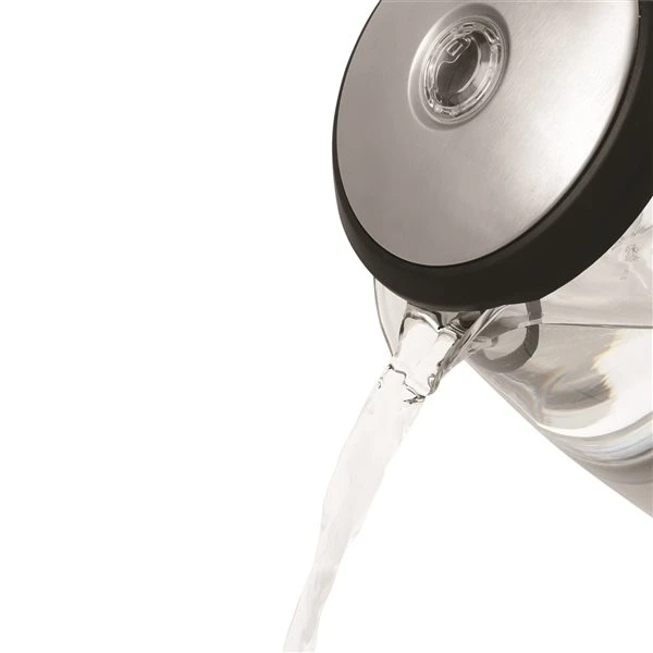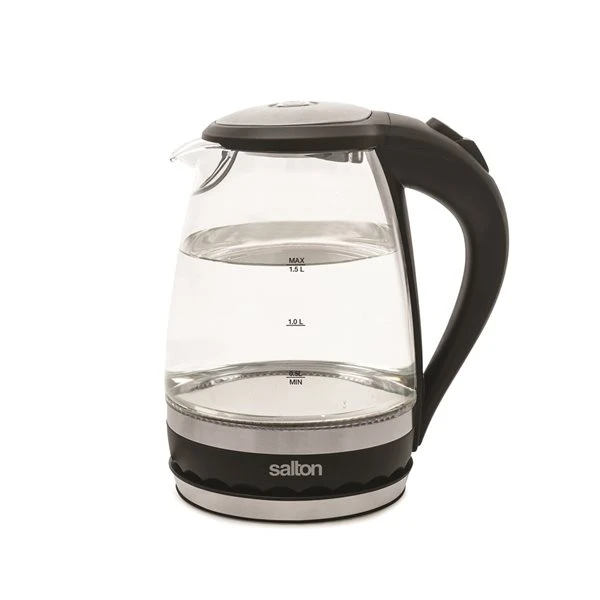 Add a little light to your water with a vibrant blue illumination. This Salton kettle is the perfect small-space solution. Elegantly crafted with thermal shock resistant glass and brushed stainless steel, this kettle is a safe and economical way to boil water. The hinged lid and concealed heating element permit fast and easy cleaning while the convenient water level markings on both sides of the kettle and 360° base allow for easy right or left hand use. The handy cord wrap will eliminate clutter from your counter and the sleek design will illuminate the look of your kitchen.
