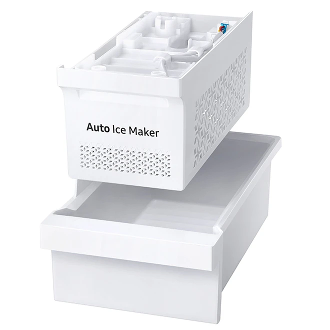 You won’t have to worry about running out of ice at your next family gathering or when you’re entertaining with this Samsung automatic ice maker. This top-freezer compatible ice maker can produce up to 3.7 lb. of ice in a day and has a 5.5 lb. storage capacity. It is designed to be used with Samsung top-freezers.