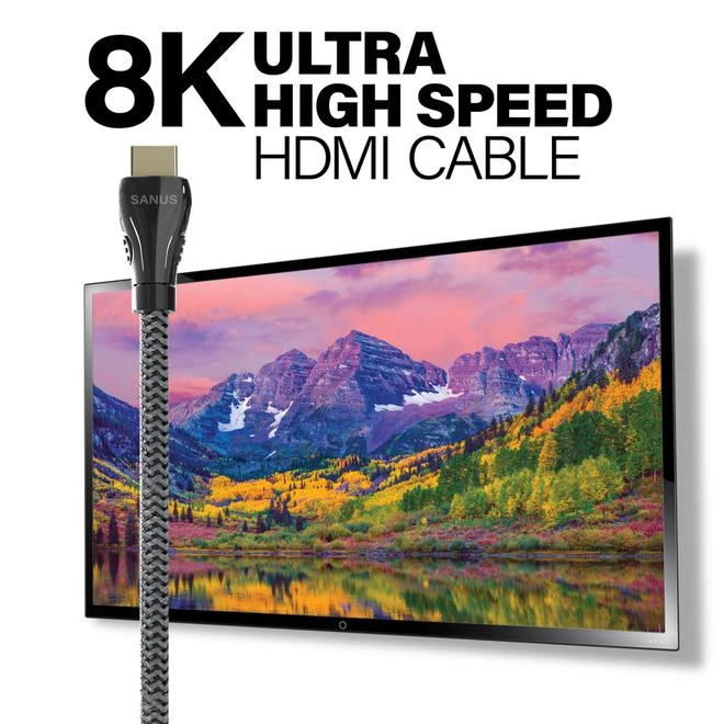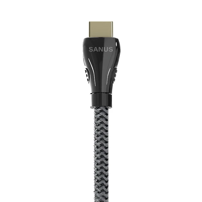 The Sanus ultra high speed HDMI cable provides a throughput for home theater audio and video in a single-cable solution. It offers an ideal way to connect devices like streaming boxes, Blu-Ray players, and gaming consoles to HDMI-enabled displays like an HDTV or home theater projector.