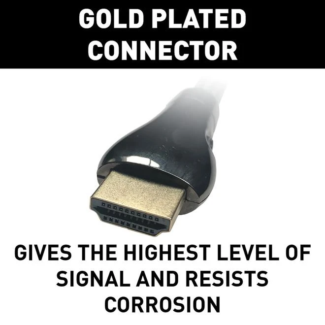 - Gold plated connector: gives the highest level of signal conductivity and resists corrosion