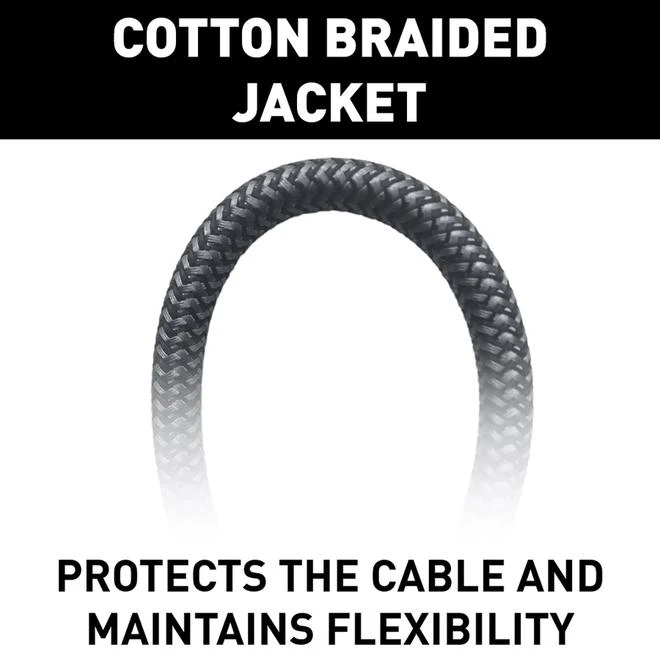 - Cotton braided jacket: protects the cable and maintains flexibility