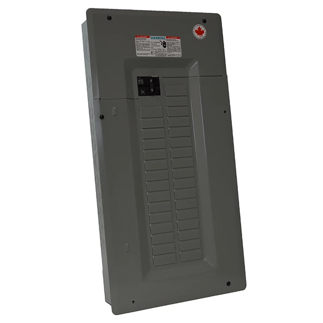 32/64 circuits load centre with 100 A factory installed main breaker. Includes following breakers: 1x (15 A, 1p) double function ARC combo and GFCI, 5x (15 A, 1p) ARC, 6x (15 A, 1p), 2x (20 A, 1p), 1x (30 A, 2p), 1x (40 Am 2p). 1 year warranty following the installation or 18 months following the delivery.