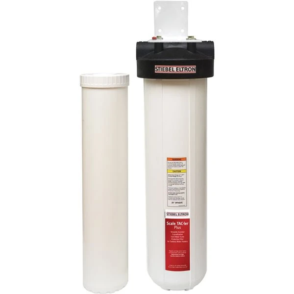 Scale TAC-ler Plus water conditioner works with all tankless and tank water heaters to prevent hard water scale. Preventing scale formation ensures water heater optimal performance, increases service life, and may prevent premature failure. Scale TAC-ler Plus installed on the cold water inlet of the water heater will prevent future mineral build-up by treating water entering the water heater, providing protection for flow rates up to 6 gallons per minute. Scale TAC-ler Plus uses a process called Template Assisted Crystallization, or TAC. A specialized polymeric bead medium serves as a catalyst for the formation of calcium and magnesium carbonate nano-crystals which remain suspended in the water and pass through to the drain instead of forming hard mineral scale on surfaces. A university study determined TAC technology was the most effective non-salt water conditioners, with scale reduction levels in excess of 90%.