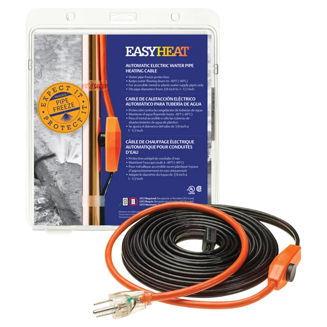- The built-in, energy-saving thermostat automatically keeps the pipe at just the right temperature
