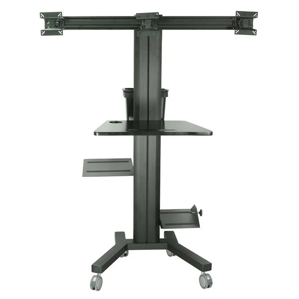 The TygerClaw computer cart is an ideal choice for advertising your products in high street shops, hotel lounges, exhibition halls, market places and wherever else you want. This attractive floor stand can accommodate up to 2 monitors having a screen size ranging from 13 to 17 inches and can withstand a total weight of 44 pounds. It is a mobile stand so you can change the position of the display wherever you want.