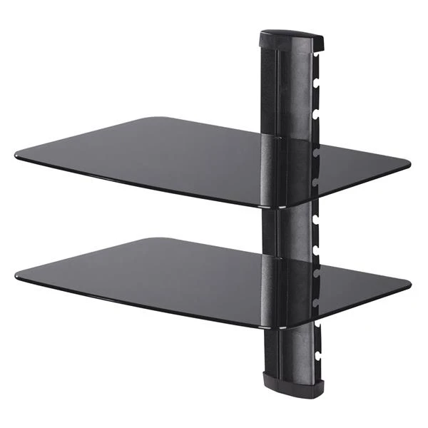 The TygerClaw double shelf allows you to organize your audiovisual devices in an elegant way. Designed for multimedia devices weighing up to 22 pounds, it is built with solid materials and tempered glass. Use it for your DVD players, video games and other equipment. You can adjust the height according to your preferences and the installation is quick and easy. Free your space!