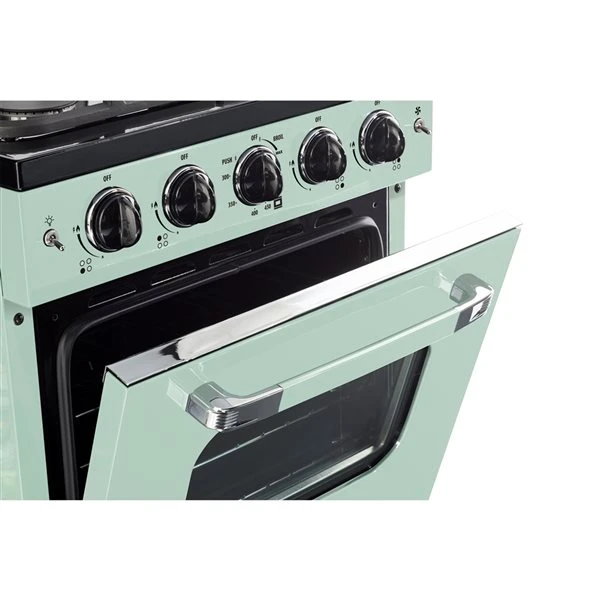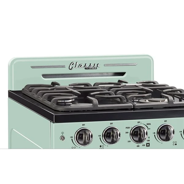This 24-in gas range by Unique transports you back to the 1950s with its iconic retro design and chrome-finished accents. Convection cooking circulates heat for incredibly even distribution while the broiler provides the option of intense searing. Simple effortless controls and stylishly designed.