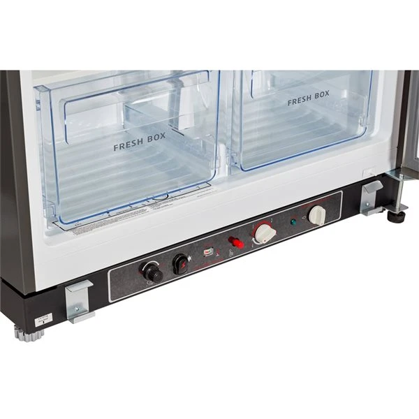 Sleek, modern, and spacious, what more could you ask for in a propane-powered refrigerator? This refrigerator has been designed to bring you all the convenience of home for the cottage, campsite, lake house or wherever you need to prepare meals. Ample storage space means you can bring up supplies to last you comfortably for extended stays. Plus the removable shelves and crispers make it easy to store and access ingredients, and ensure cleaning is quick and simple.