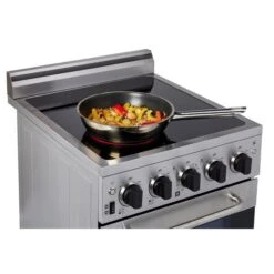 The Prestige Electric Convection Range comes with a sleek glass 4 elements electric cooktop capable of an intense sear or delicate sauce simmering. A smart hot burner indicator shows which burners are still hot while the glass cooktop makes for easier cleanup. Compact kitchen spaces deserve all the style, convenience, and impact found in bigger spaces, from convection cooking for perfectly even heat, to a waist-high broiler for intense searing this compact range also offers a compartment for extra storage. Cooking and cleaning are completely effortless.
