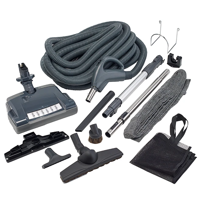 Venmar’s central vacuum accessory kit includes all the tools needed to deep clean virtually every type of flooring, whether it be hard flooring or carpet. There’s 1 electric power brush for deep cleaning of medium to high pile carpet, 1 electric wand dedicated for electric power brush, and a 35-foot crushproof dual-voltage hose with an ergonomic handle. Plus, full 360-degree rotation helps prevent against wrist strain and hose kinking. A knitted hose sock protects furniture and trims from scratches. It also comes with 1 premium hard floor brush, 1 carpet glider, 1 mesh storage bag, 1 wand hanger, 1 stainless steel telescopic wand, 1 long crevice tool, 1 upholstery tool, 1 dusting brush, and 1 strong metal hose hanger. This product is backed by a 3-year warranty on the hose and a 1-year warranty on accessories.