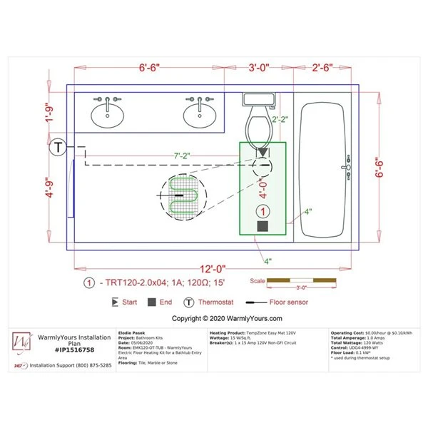 - Comes with a 120 V Tempzone floor heating mat, a nSpire Wifi touch programmable thermostat, and a circuit checker tool