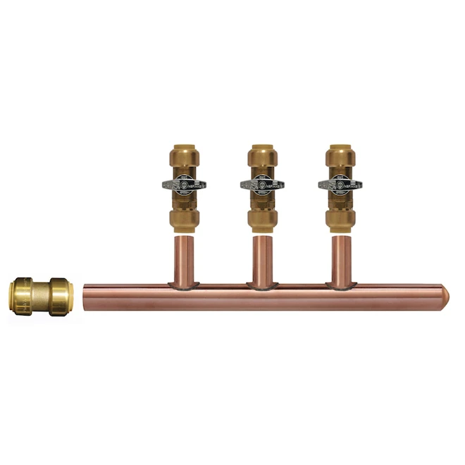 This 3-branch manifold from Waterline is lead-free and for use with hot and cold potable water. It comes with push-and-connect valves that will simplify its installation with copper, PE-RT, CPVC and PEX pipes.