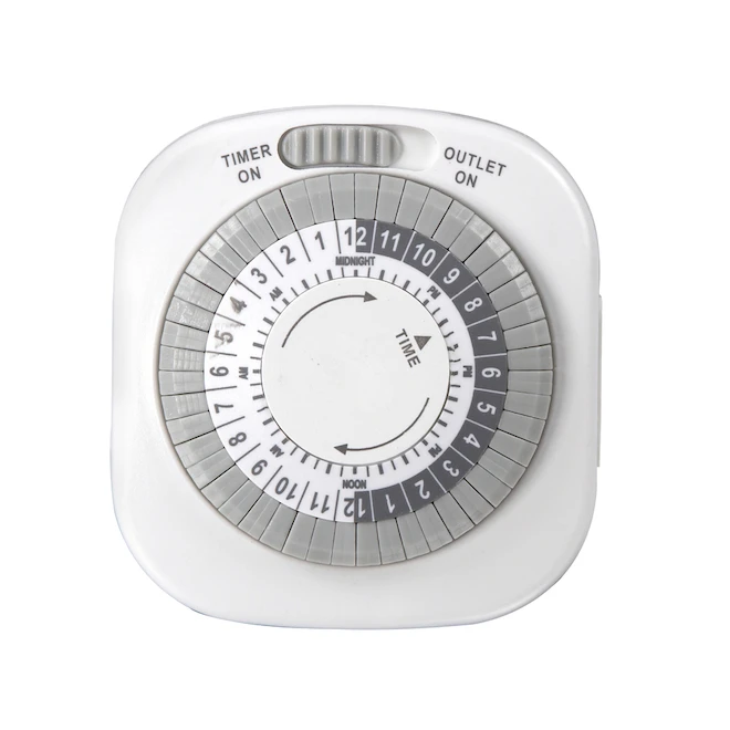 Easy to use and reliable, this daily timer can be programmed to turn lights or appliances On/Off at set times throughout the day. It also features a manual override switch for added convenience. Non removable pins can’t get lost. The front mounted switch allows access even when above outlet is in use.