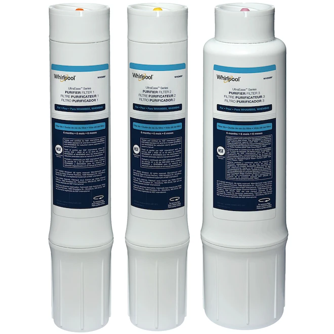 - Replacement filter 3-pack for Whirlpool water purifier filtration system (fits systems WHAMBS5 and WHEMB40)