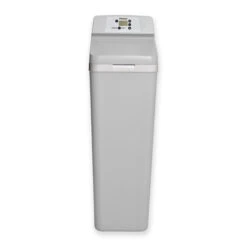 This 33 000 grains water softener from Whirlpool is rated a best buy for performance and value. It features money-saving regeneration and 6th Sense technologies, which learn and predict your water usage to regenerate only when you need it. It also automatically calculates how much salt to use instead of using a fixed amount. This multi-purpose system can connect to plumbing up to 1 in in diameter and is designed to remove up to 105 grains per gallon of hardness and 9 PPM of ferrous iron. It’s ideal for households of 1 to 5 people and removes high levels of water hardness and iron. This water softener is NSF certified and will help your water using appliances to operate more efficiently.