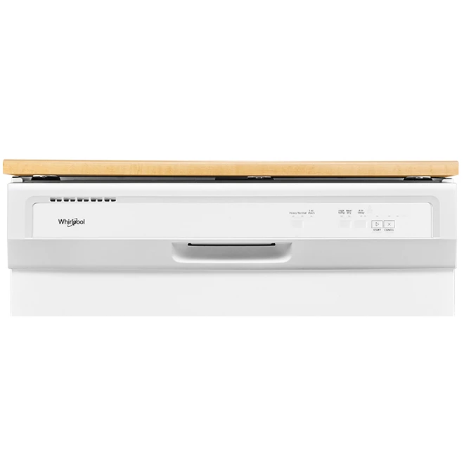 Say goodbye to guesswork with this Whirlpool heavy-duty portable dishwasher. A built-in sensor evaluates the soil level of dishes and adapts the washing cycle for customized cleaning. This dishwasher features 3 cycles, including an intensive cycle that effectively eliminates sticky food residues and other heavily soiled items, as well as a wash cycle that thoroughly cleans and effectively dries your pots, pans, and glasses in only an hour. A high-temperature wash option gives items like baby bottles, glassware, and dishes a more thorough clean, while an enhanced heat-drying option eliminates the hassle of drying your own dishes. For optimal drying results, use this option with rinse aid. Backed by a 1-year limited warranty on parts and labour. Power cord is included.