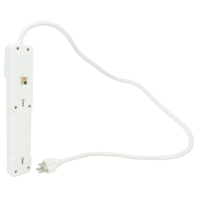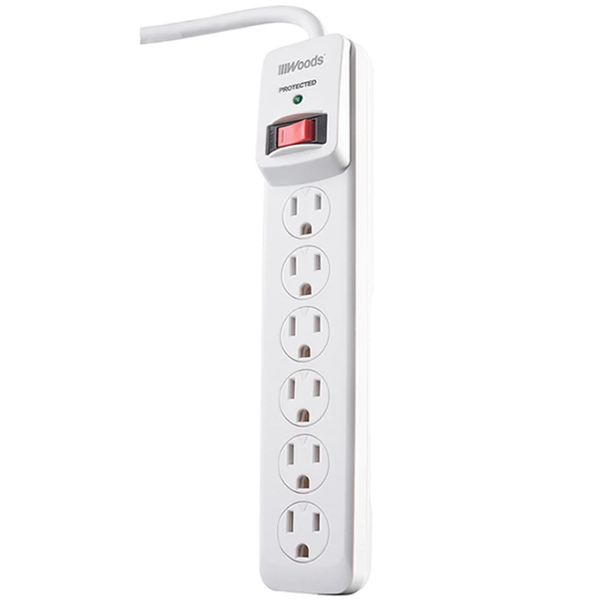 This 6-outlet Woods power bar is equipped with a 3′ electric cord and an on/off switch, which saves energy. It is also equipped with surge protection, allowing the use of electronic accessories with complete peace of mind. The product comes with a 1-year limited warranty.