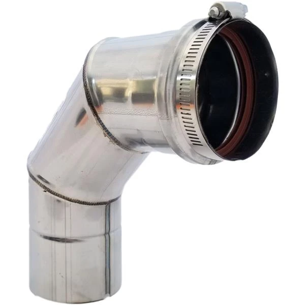 3″ x 90 degree stainless steel category II/III elbow for use when a direction change or offset is required. Features gasketed connections for a seamless and easy installation. UL approved and rated for category II/III heating equipment. Angle can be adjusted.