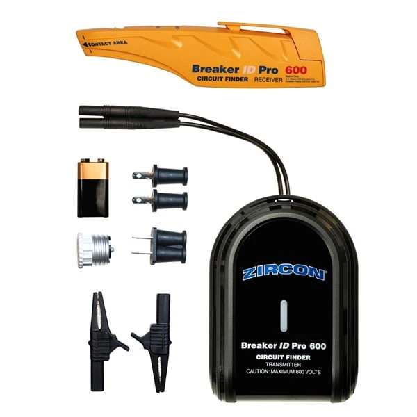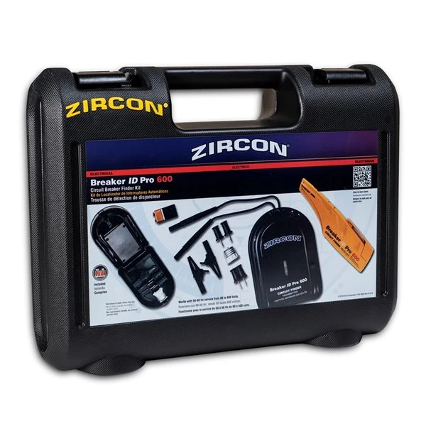 The Zircon® Breaker ID Pro 600 circuit breaker finder kit identifies single and three-phase circuits of 50 Hz or 60 Hz between 80 – 600 V AC and with multiple subpanels in residential, commercial, and industrial environments. Use to scan for identification and labelling of all breakers. Identify a breaker without trial-and-error. Minimize accidental shutoffs to essential power gear like medical equipment, servers, and appliances. Isolate circuits for repair or replacement or work on specific circuits without interrupting others.