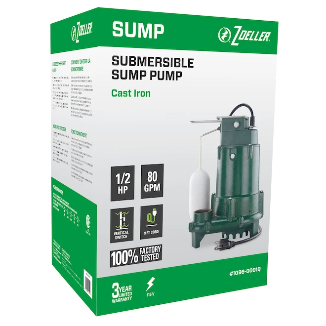 Protect your basement or crawl space with the Zoeller pro 0.5 HP sump pump. This pump features a premium Zoeller float switch tested to 1,000,000 cycles for reliable water removal and long pump life. The 0.5 HP Motor quickly eliminates water from your sump pit providing up to 80 GPM. The rugged cast iron construction and non-clogging vortex impeller provides long-term peace of mind. Instructions and a quick-start guide are included for your convenience to ensure easy installation and operation for this Zoeller pro sump pump.